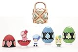 なかよし好評連載中の『しゅごキャラ!』がアニメになって玩具も発売となりました。パッケージには6歳以上対象とありますが、大振りで単純な作り、オートオフ機能と6歳以上(なかよし読者層)向けと言うより、3〜6歳(アニメターゲット?)向けの印象。こちらの紹介では3歳以上となっております。買ったばかりでまだ耐久性のほどはわかりませんが、中の人形も愛らしく、光ってしゃべる玩具としてはとてもかわいらしい出来です。別売の「アミュレットアクセ&ポーチ」に収納できるのはたまご3つですが、鍵はこちらの商品の付属ストラップで首に下げられるのであむちゃんなりきりゴッコが出来ます。お子さんが「音が出にくい」と言った場合、ただ近づけるだけではなくセンサーのあるたまごの底面を鍵の中央にくっつけるように指示してみたらよいかもしれません。その他難点を挙げるとすれば原画のようにたまごにチェック模様をつける・・・つまり付属シールをきれいに貼るのはちょっと難しいのと、単4電池2本収納する鍵ですのでコスプレのようになりきって胸元を飾るアクセとしてはやや大きい、といったところでしょうか。もちろんシールを貼らずとも、充分かわいい塗装だとは思います。